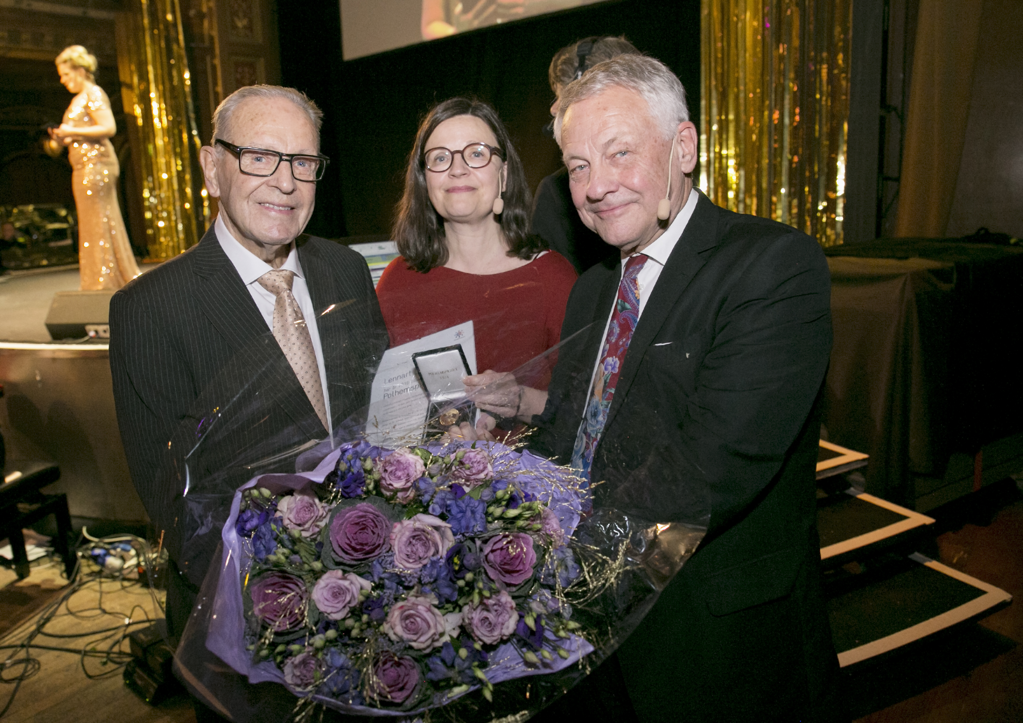 Bildtext: Polhemsprisets vinnare Lennart Lindblad, tillsammans med gymnasie- och kunskapslyftsminister Anna Ekström samt Polhemsrådets ordförande Bengt Westerberg.